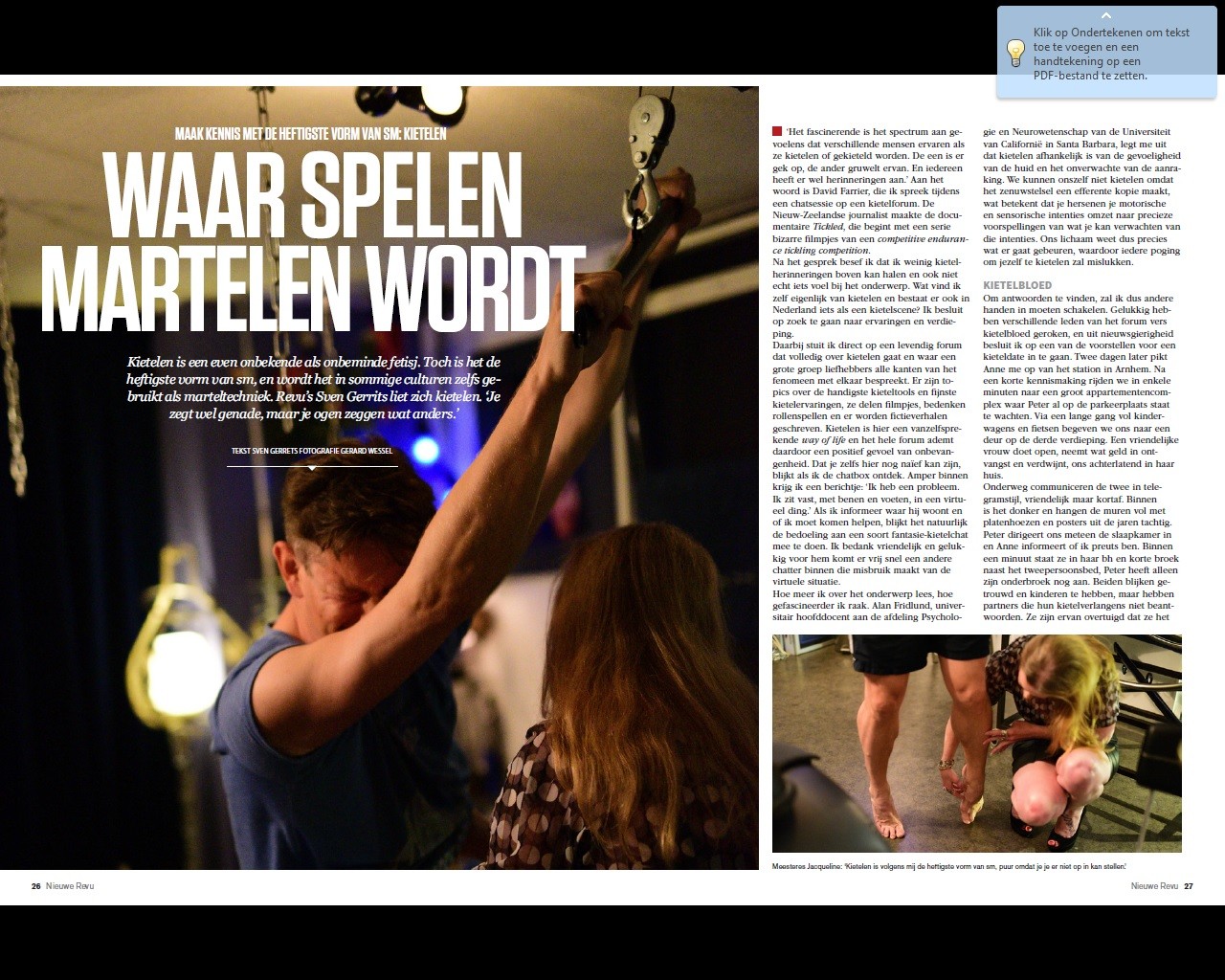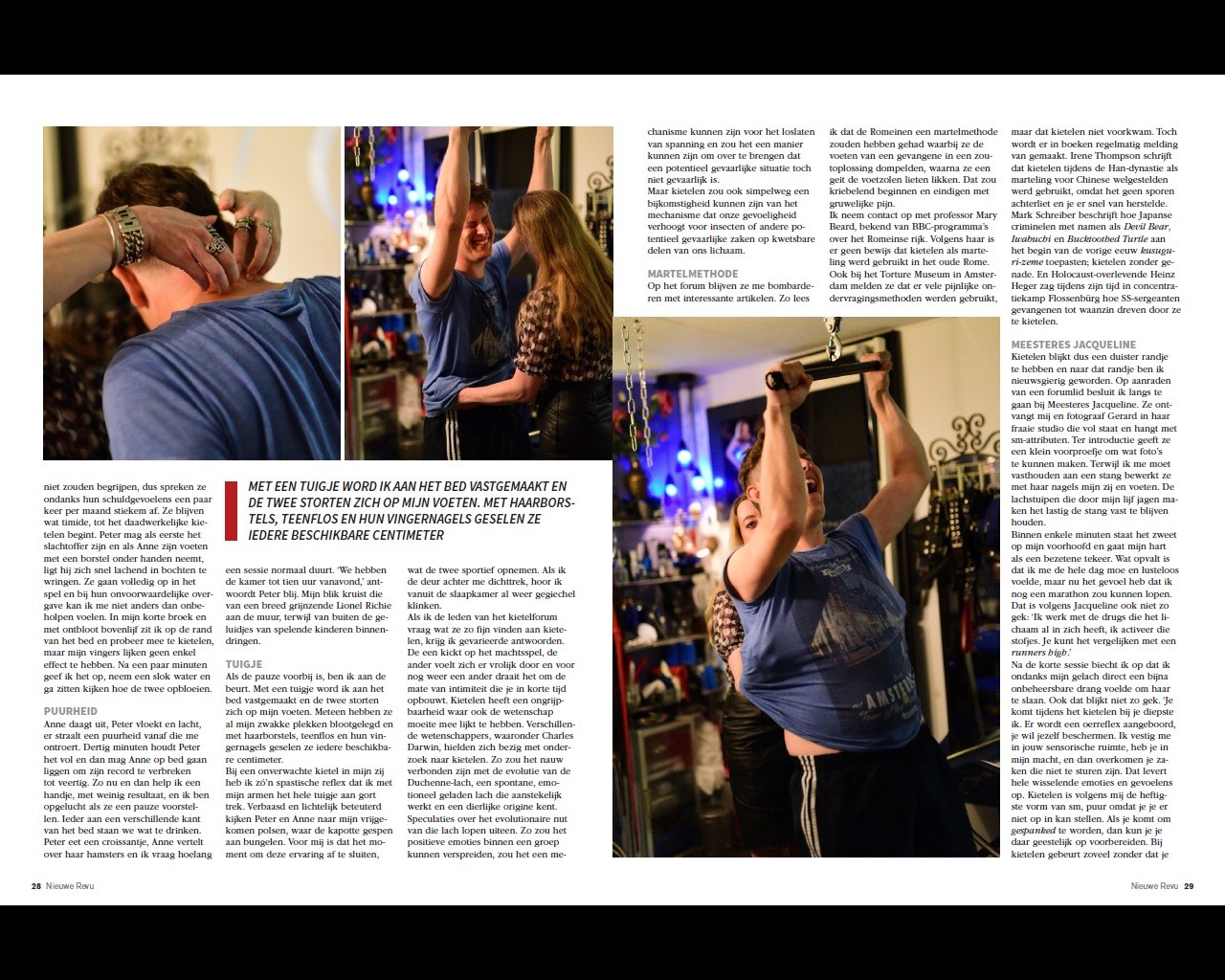 * Iemand met een voorliefde voor KIETELEN (Knismolagnia). Tja, dan heb jij natuurlijk alles met gekieteld worden. Hoe leuk is het dan, om hier daarover te lezen. Dat er op deze pagina een award staat juist daarmee verdiend. En ik ooit gevraagd ben voor een heel interview m.b.t. kietelen binnen mijn vakgebied. Wat toen in 2016 in de Nieuwe Revu gestaan heeft. Onderaan deze pagina, kun jij dat hele interview lezen. Door op de beginpagina te klikken, opent het in een groter formaat leesbaar.